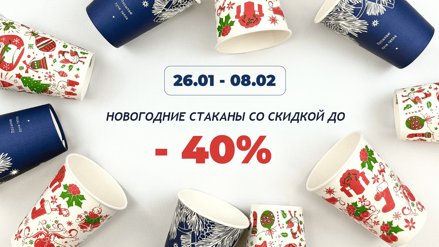 Стакан НГ 250(260)мл бумажный НОВОГОДНИЙ 50шт D=80, d=57, H=92,5мм ПБФ Арт.102