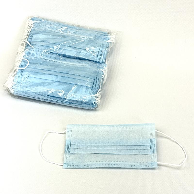 Маска медицинская для лица 3-х слойная УП=50шт ГОЛУБАЯ