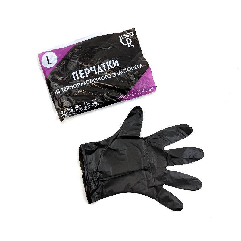 Перчатки ТПЭ ПАКЕТ ЧЁРНЫЕ "L" УП=100шт Китай