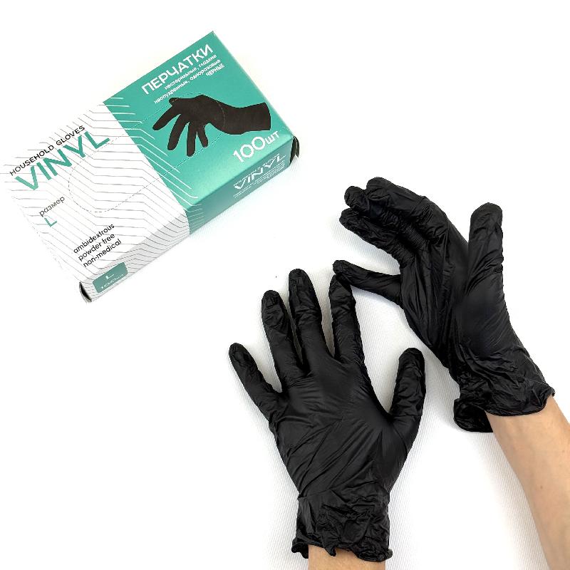 Перчатки виниловые неопудренные ЧЁРНЫЕ "L" УП=100шт