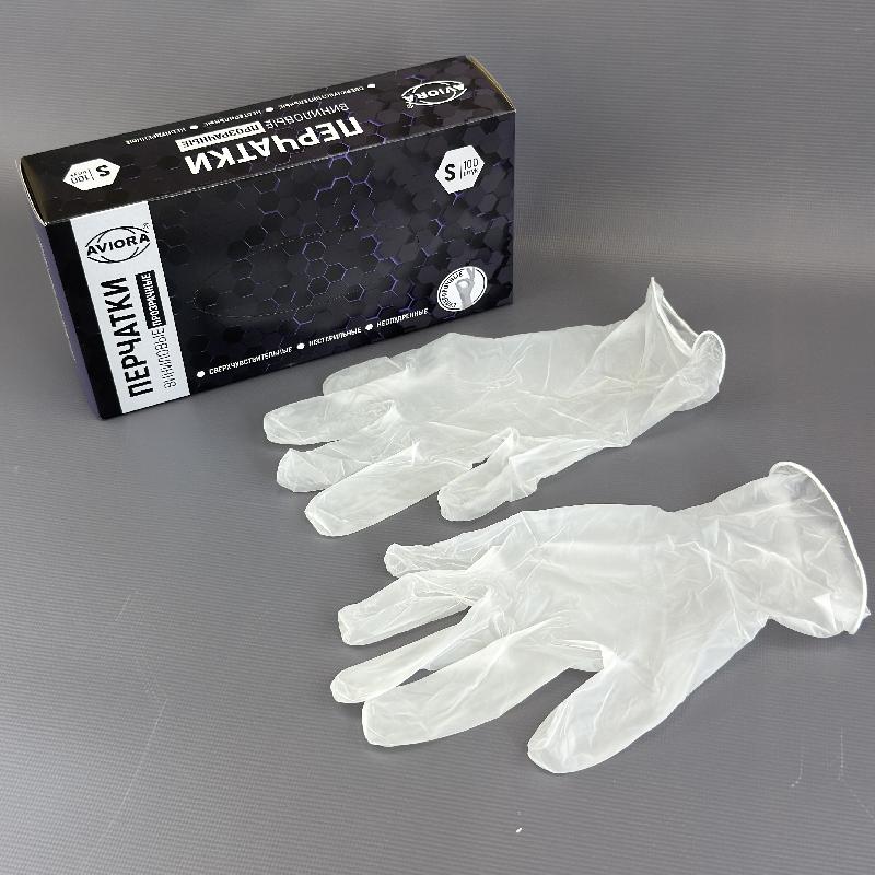 Перчатки виниловые неопудренные "S" УП=100шт AVIORA