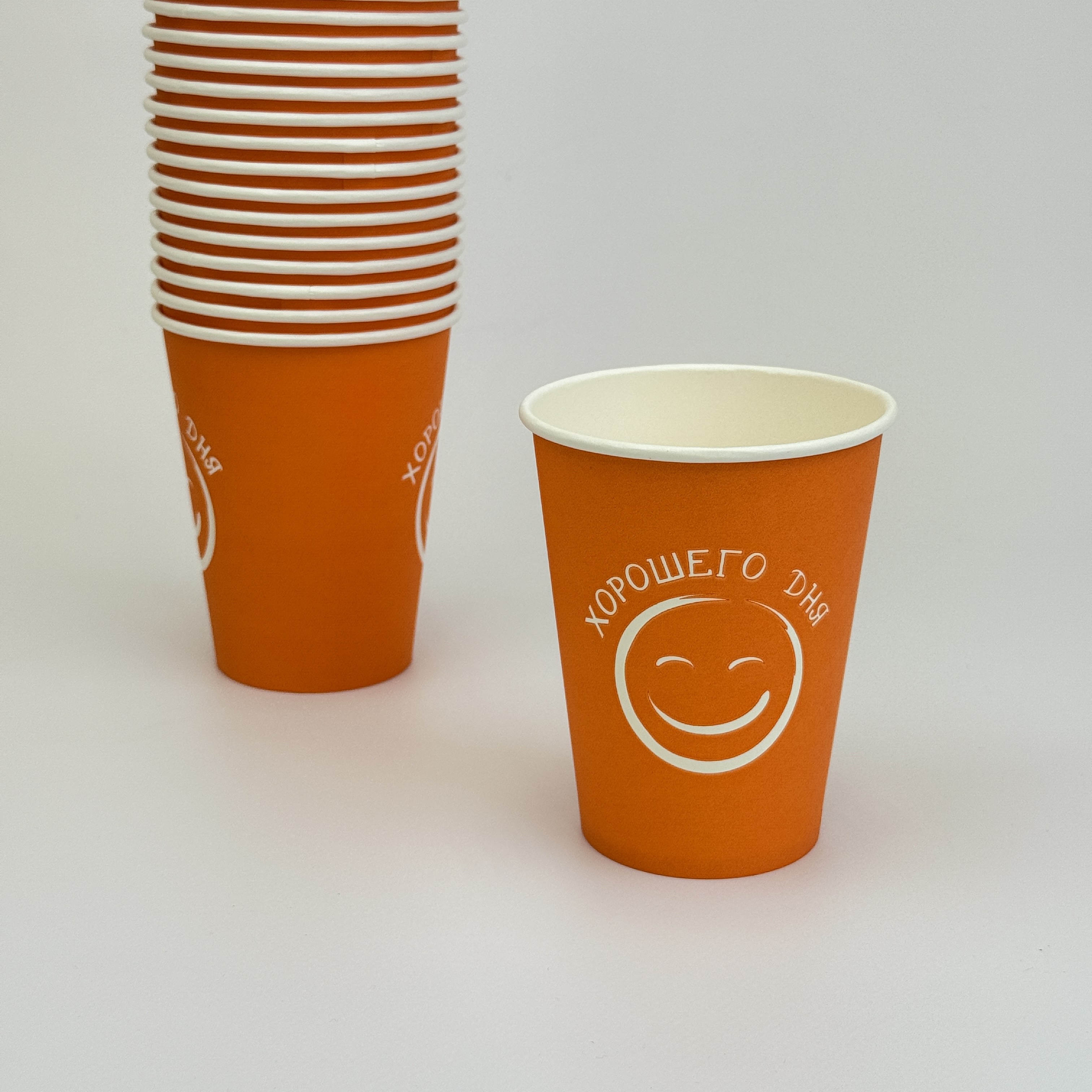 Стакан 350(410)мл бумажный ХОРОШЕГО ДНЯ (оранжевый) 50шт D=90, d=60, H=110мм GOOD