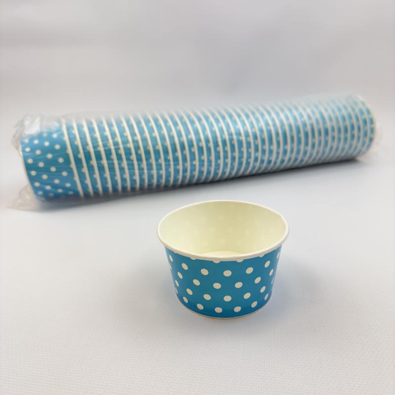 Креманка картон ГОЛУБАЯ в белый горошек 245мл 50шт D=98мм d=75мм H=55мм