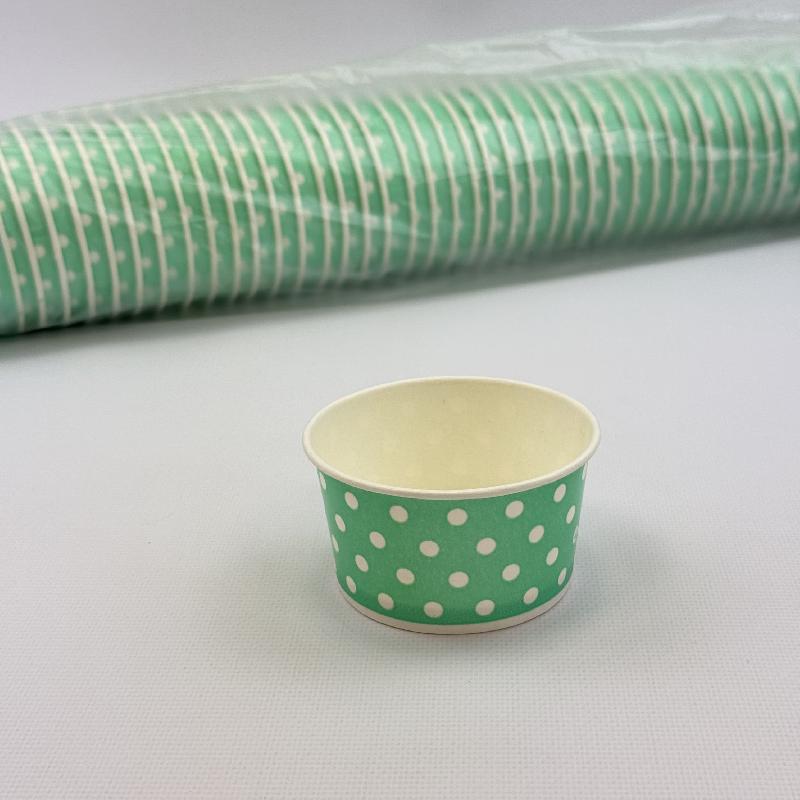 Креманка картон САЛАТОВАЯ в белый горошек 165мл 50шт D=87мм d=79мм H=47мм