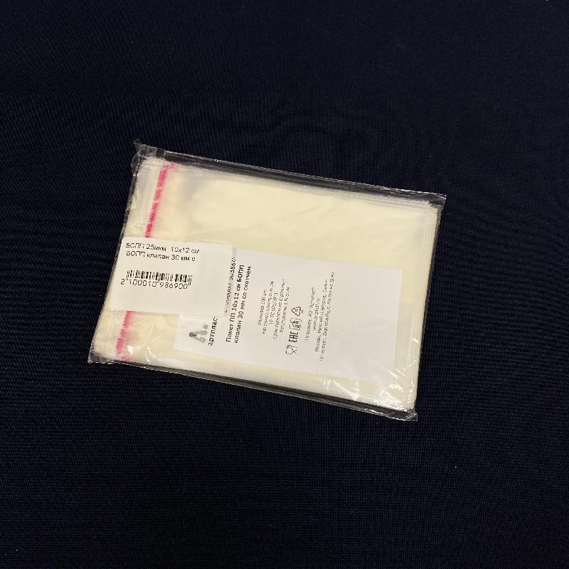 Пакет БОПП 10х12+3см (25) УП=100шт с клеевым клапаном