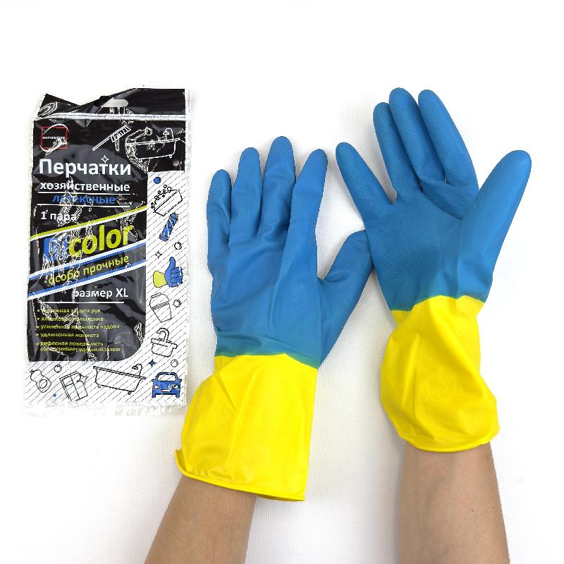 Перчатки латексные БИКОЛОР "XL" 1пара СИНЕ-ЖЁЛТЫЕ