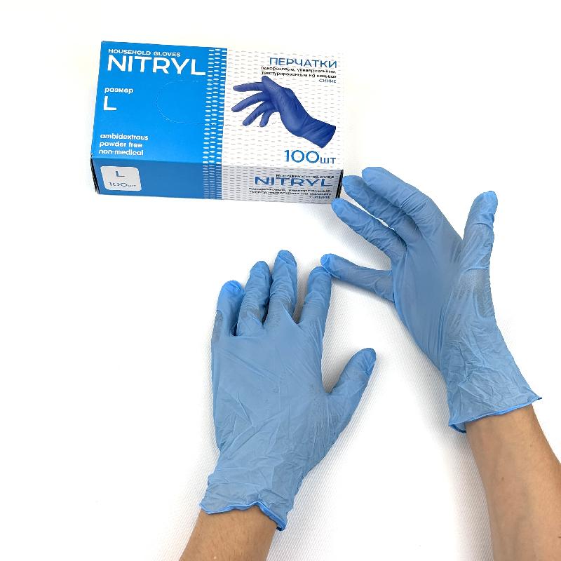Перчатки НИТРИЛовые ГОЛУБЫЕ УП=100шт "L" неопудренные