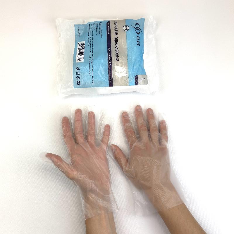 Перчатки ТПЭ ПАКЕТ прозрачные "L" УП=100шт С ТЕКСТУРОЙ