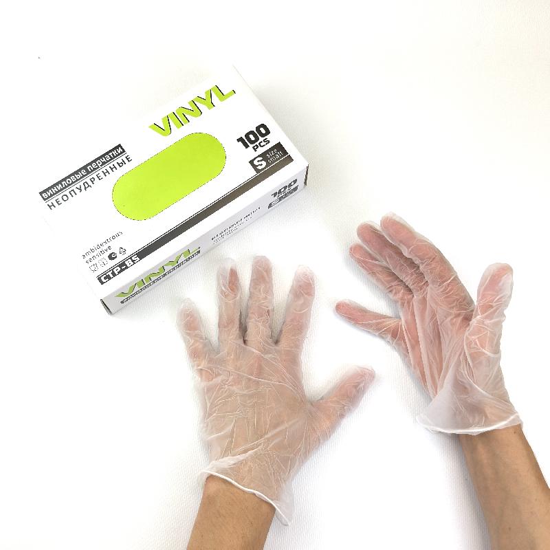 Перчатки виниловые неопудренные "S" УП=100шт VINYL