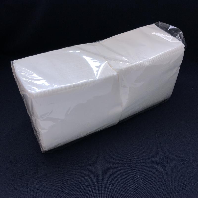 Салфетки бумажные белые, 2-х слойные. Размер листа 33х33 см, упакована по 200 штук в полипропилен. Транспортный кейс - по 7 упаковок в картонной коробке.